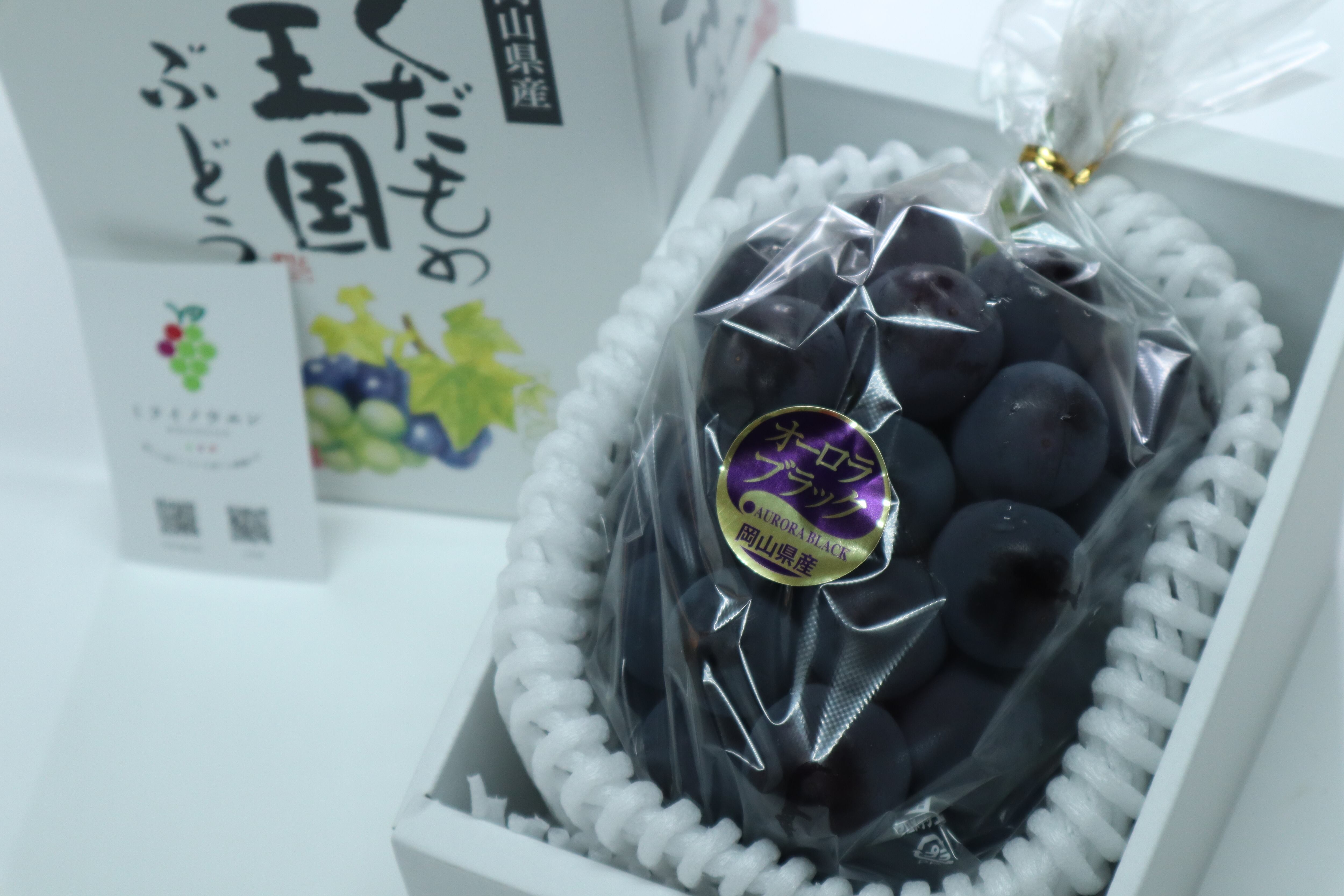 厳選した岡山県産のオーロラブラックを化粧箱でお届けします。